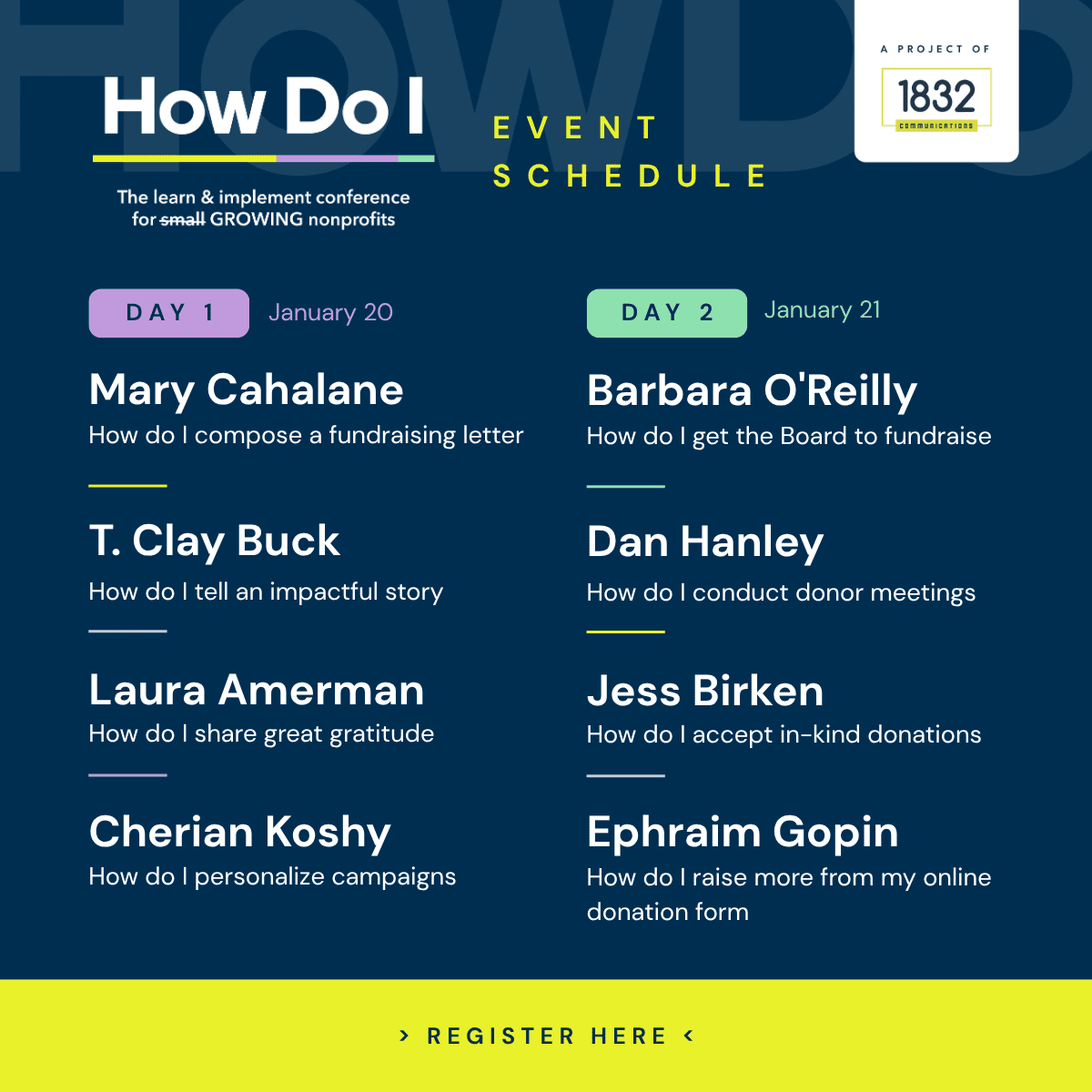 - How to: Less theory, more emphasis on the practical how to. Learn the steps necessary to improve 8 different areas of your fundraising efforts.